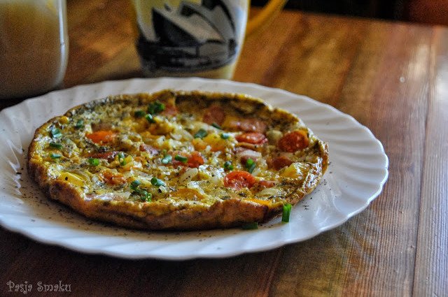 Omlet z kiełbasą i pomidorami
