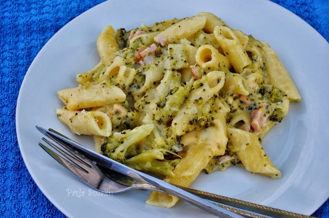 Zapiekanka brokułowa z szynką to jedna z moich ulubionych zapiekanek, którą chyba robię od zawsze, a raczej od kiedy mama samodzielnie pozwalała mi działać coś w kuchni. Kocham brokuły, a połączenie z makaronem, sosem i serem jest obłędne. Polecam i