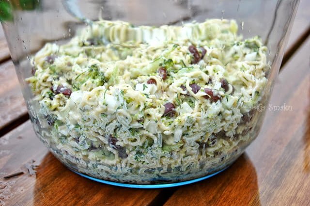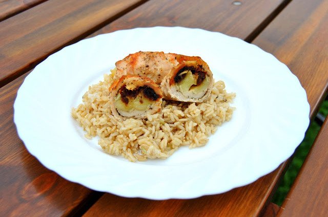 Kolejna inspiracja z Biedronki. Początkowo nie byłam do niej przekonana, bo nie lubię takich połączeń, ale przyznam, że bardzo mi smakowała. Cebula świetnie uzupełnia się z owocami i wbrew przypuszczeniom nie jest dominującym smakiem. Szybki, letni obiad lub lekka kolacja.