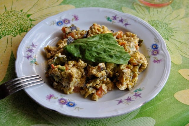 Kolejna jajecznica autorstwa mojego prywatnego kucharza śniadaniowego. Tym razem z przewagą papryki. Była tak pyszna, że aż się muszę nią pochwalić. Składniki: 1 pomidor 1/2 żółtej papryki 1 mała cebula 6 jajek sól, pieprz bazylia chili Wykonanie: Paprykę i cebulę