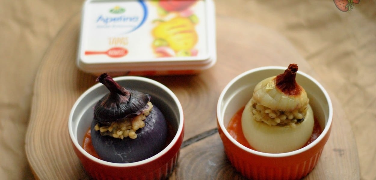 Przepis powstał na konkurs z serkiem Apetina. Cebulę faszerowaną chciałam przygotować już od jakiegoś czasu, ale akurat teraz miałam dodatkową motywację. Przygotowanie tego dania nie jest zbyt trudne, trzeba tylko uważać, by nie poparzyć się gorącą cebulą.