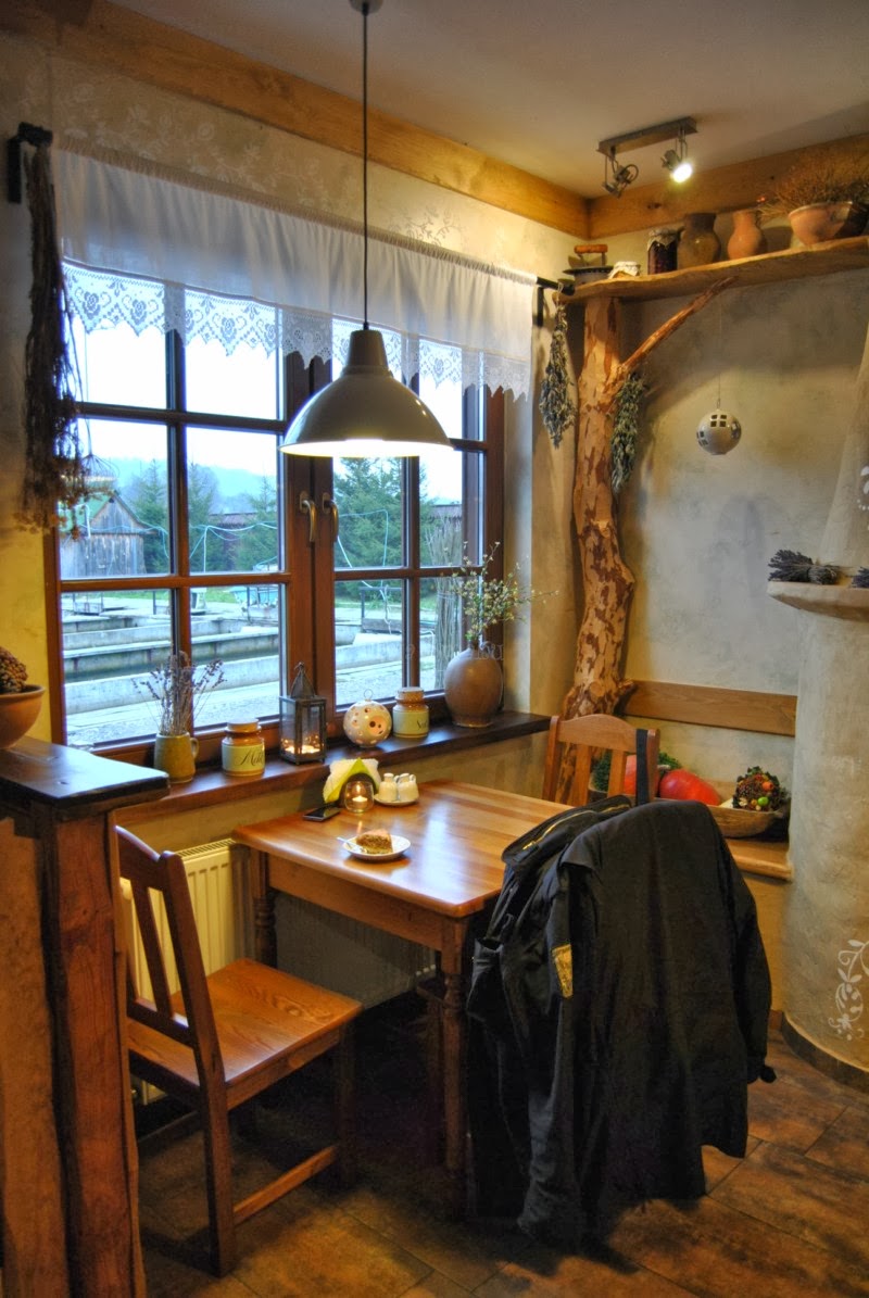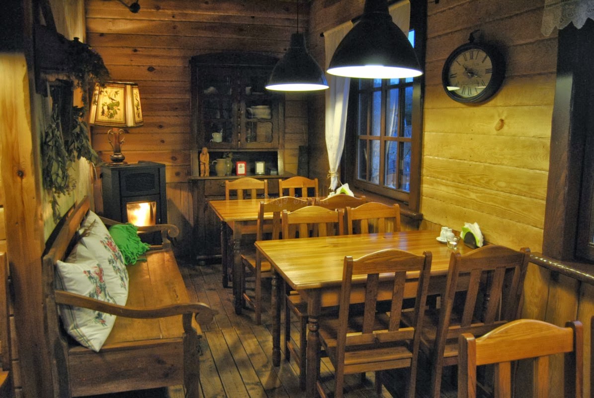 Ta opinia jest efektem dwóch wizyt w Chacie Rybaka. Pierwsza była jakby „badaniem terenu”. Jako że wybraliśmy się tam ze znajomymi w świąteczny weekend to wszystkie miejsca były zajęte. Listopadowe popołudnie było dość ciepłe, więc początkowo zajęliśmy miejsca przy stolikach na zewnątrz (przy drugiej wizycie zostały już schowane). Przez ogrodzenie można było obserwować hodowlę pstrągów, a także ich karmienie. W pewnym momencie w Chacie zwolnił się stolik i się tam przesiedliśmy. W środku panuje przyjemna i ciepła atmosfera. Miejsca nie jest dużo, ale jest bardzo przytulnie.