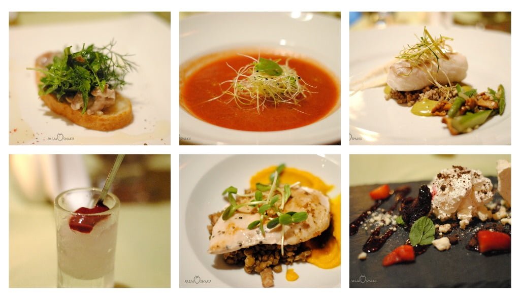 Po zajęciu miejsc (ilość krzeseł i ustawienie stołów było uzależnione od potrzeb uczestników) otrzymaliśmy na powitanie kawę mrożoną i lemoniadę. Następnie kilka słów o menu powiedział szef kuchni – Łukasz Oroń. Samo menu było wydrukowane i mogliśmy zapoznać się z nim przed degustacją. Szef kuchni tego wieczoru przygotował dla nas następujące dania:
