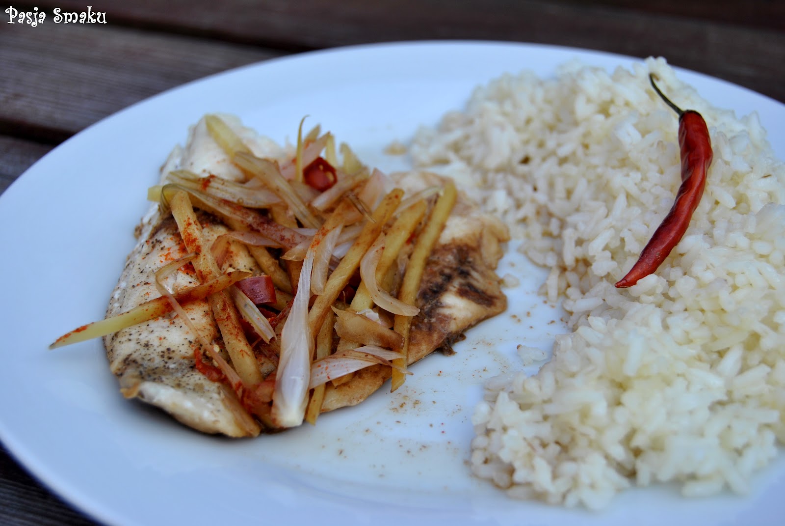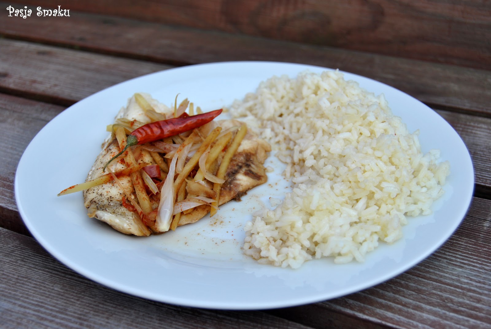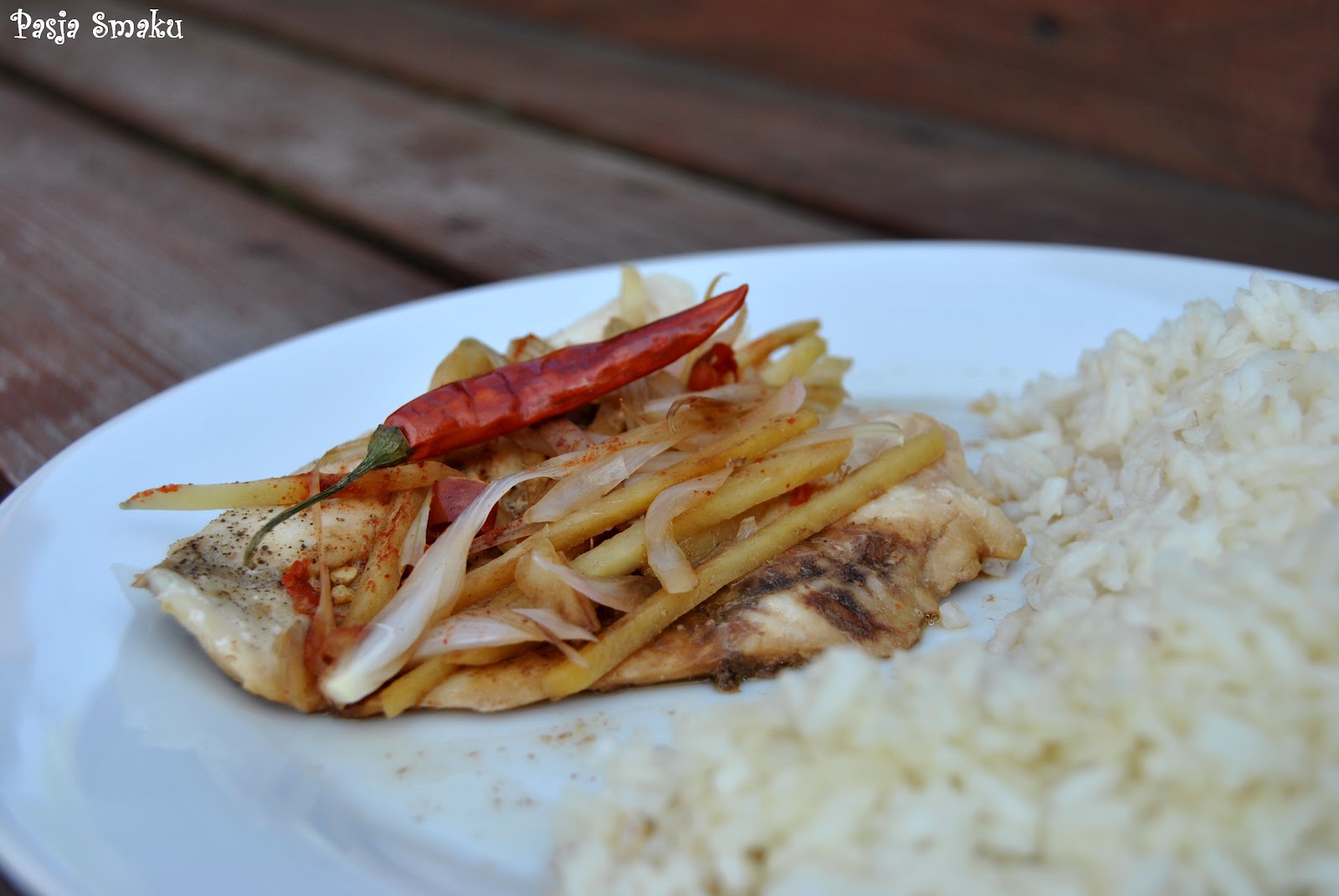 Rada: podawać z ryżem; dla lubiących ostrzejsze smaki można zwiększyć ilość papryczki lub posypać mielonym chilli.