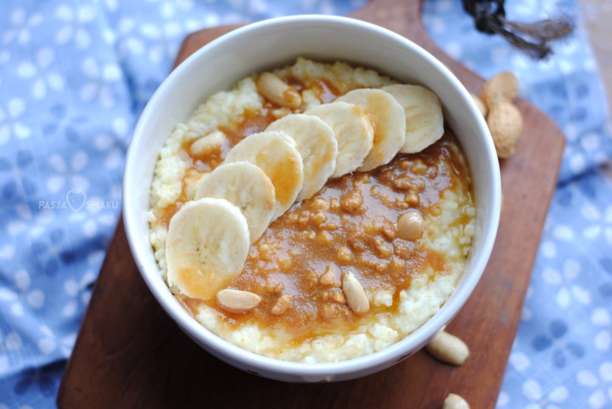 Nigdy nie byłam fanką słodkich śniadań, ale jaglanka z bananem i masłem orzechowym jest obłędna! Tak można rozpoczynać weekend – leniwie, pysznie, słodko… Do tego kubek gorącej kawy i dzień staje się piękny! Będą nią zachwyceni zwłaszcza fani masła orzechowego.