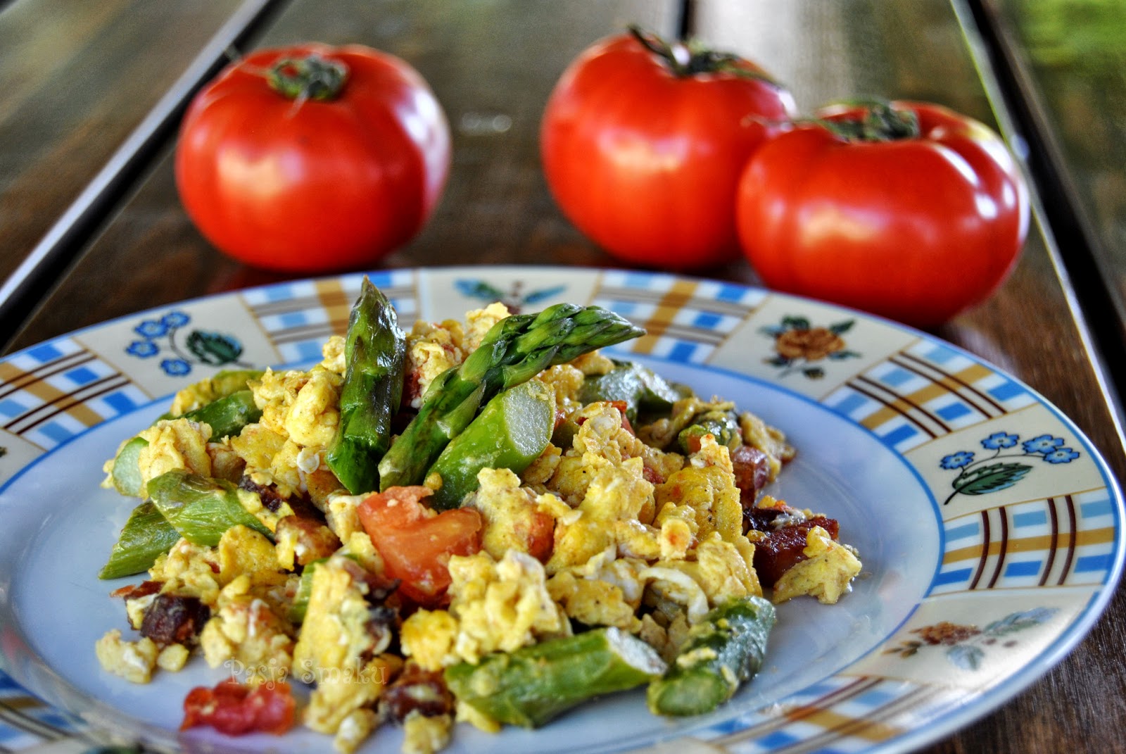 Kolejny pomysł na wykorzystanie szparagów. Pyszne połączenie i szybkie wykonanie. W sam raz na weekendowe śniadanie.