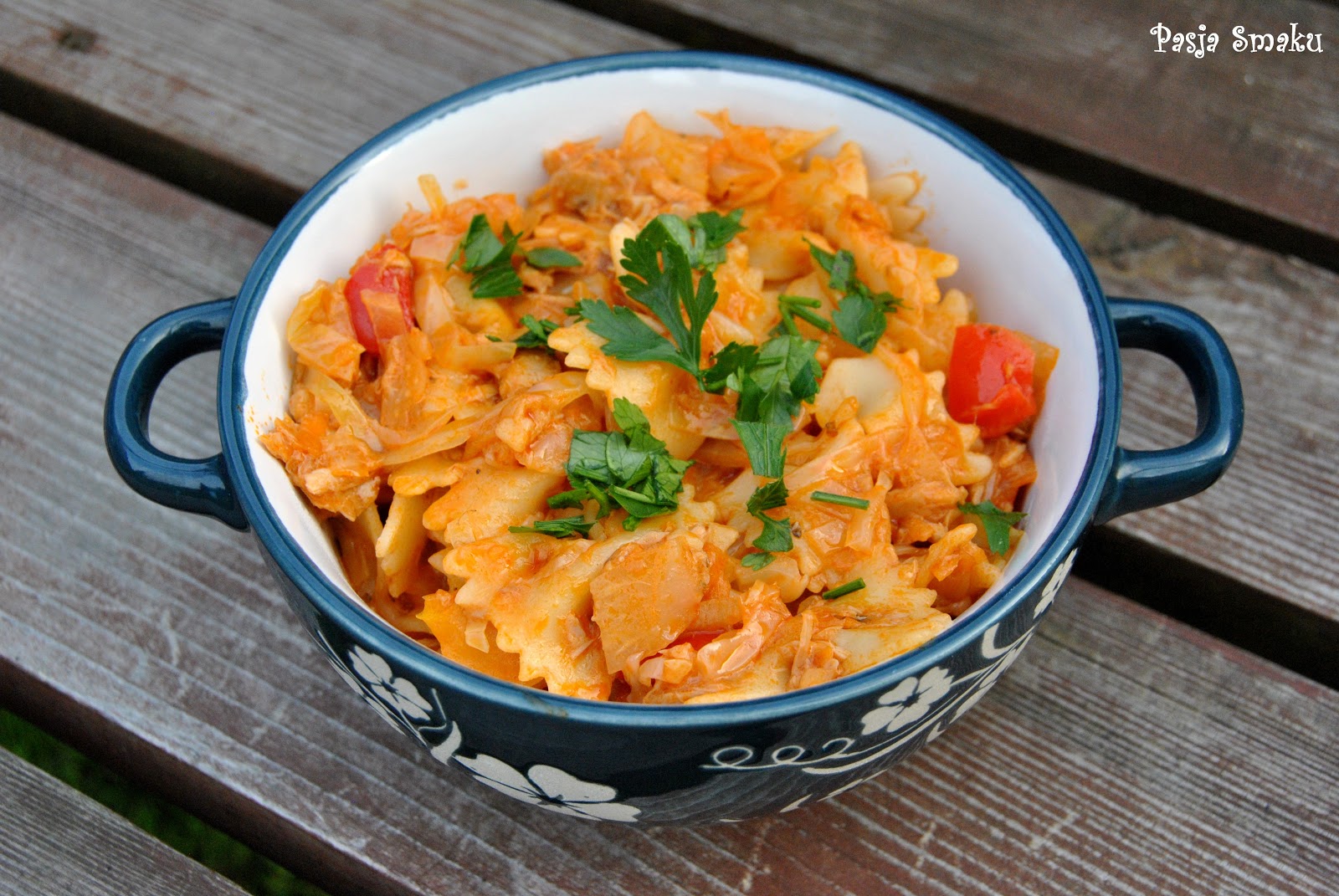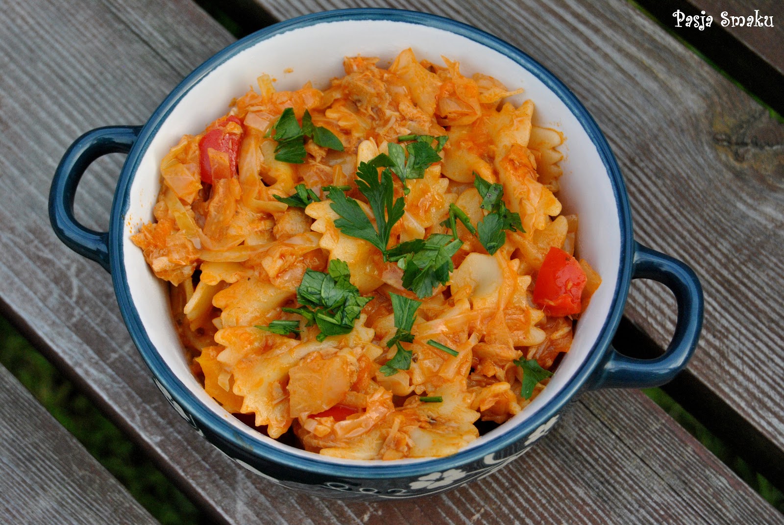 Podczas wertowania listopadowego numeru Poradnika Domowego oczywiście najbardziej byłam zainteresowana przepisami. Skusiło mnie danie makaronowe z tuńczykiem i … kapustą. Niby dziwne, ale mocno wierzyłam w jego sukces. Wyszło ciekawe, z pewnością sycące, chociaż nie każdemu pewnie zasmakuje. Niemniej u mnie wszyscy chętnie zjedli.