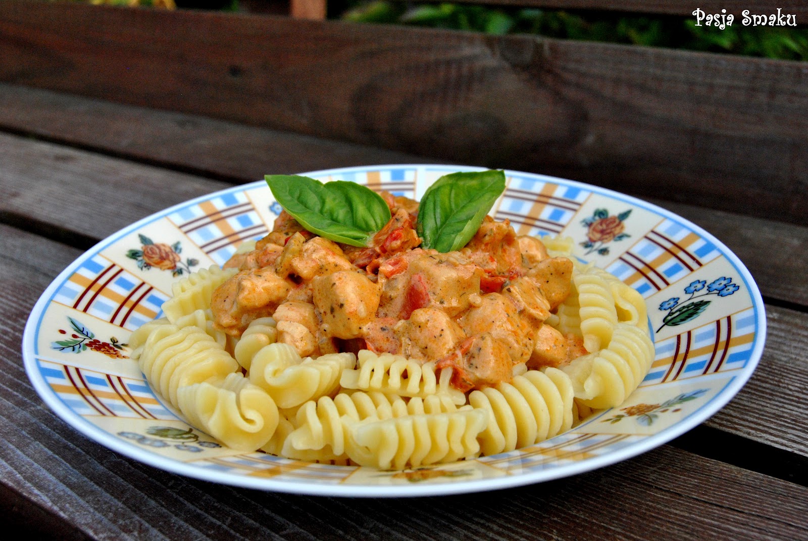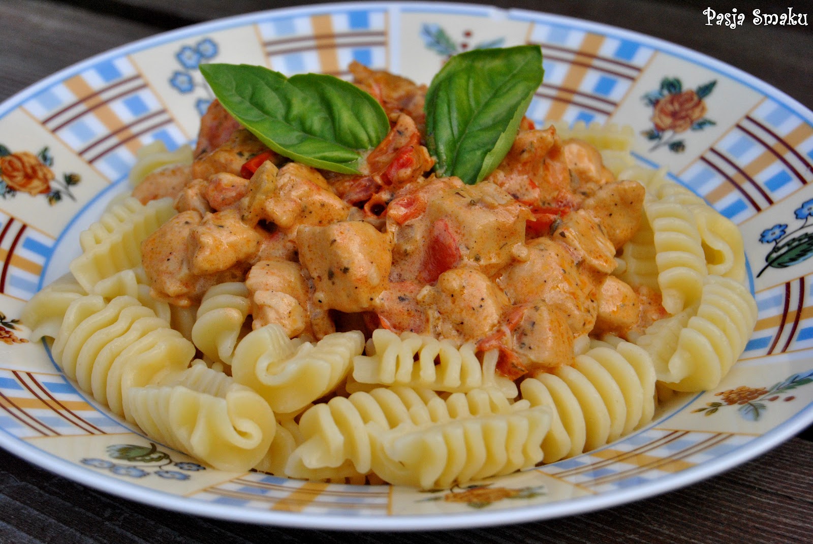 Makaron z kurczakiem w sosie pomidorowo-paprykowym