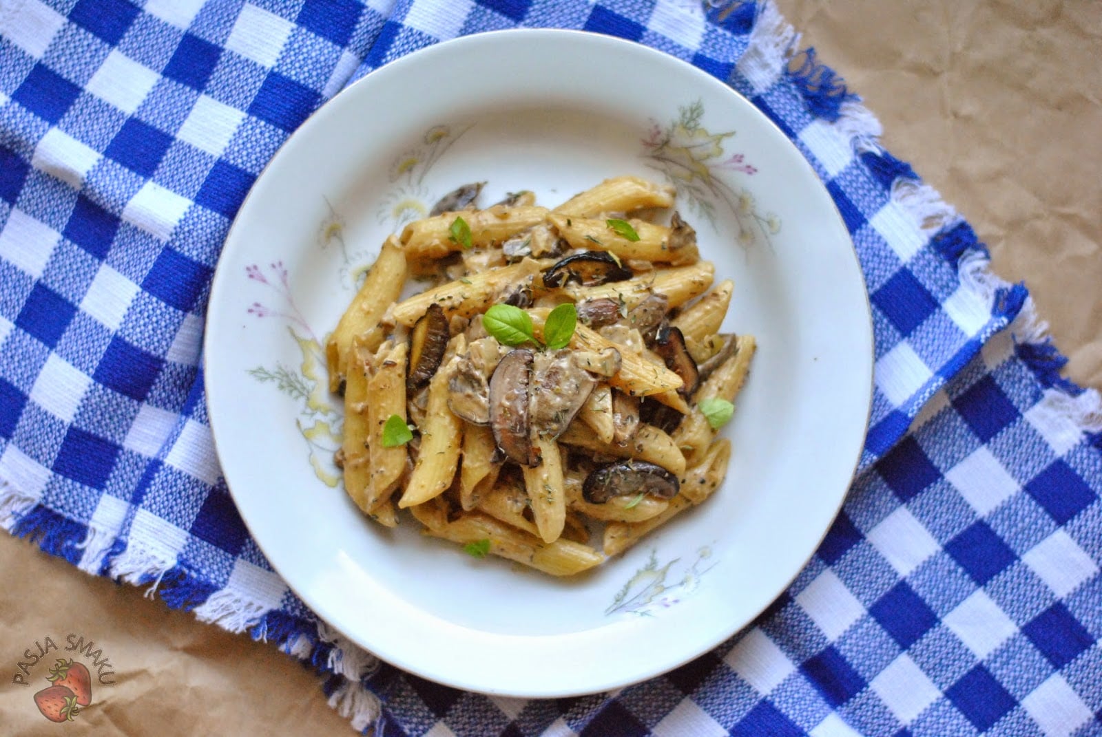 Makaron z podgrzybkami i śmietaną