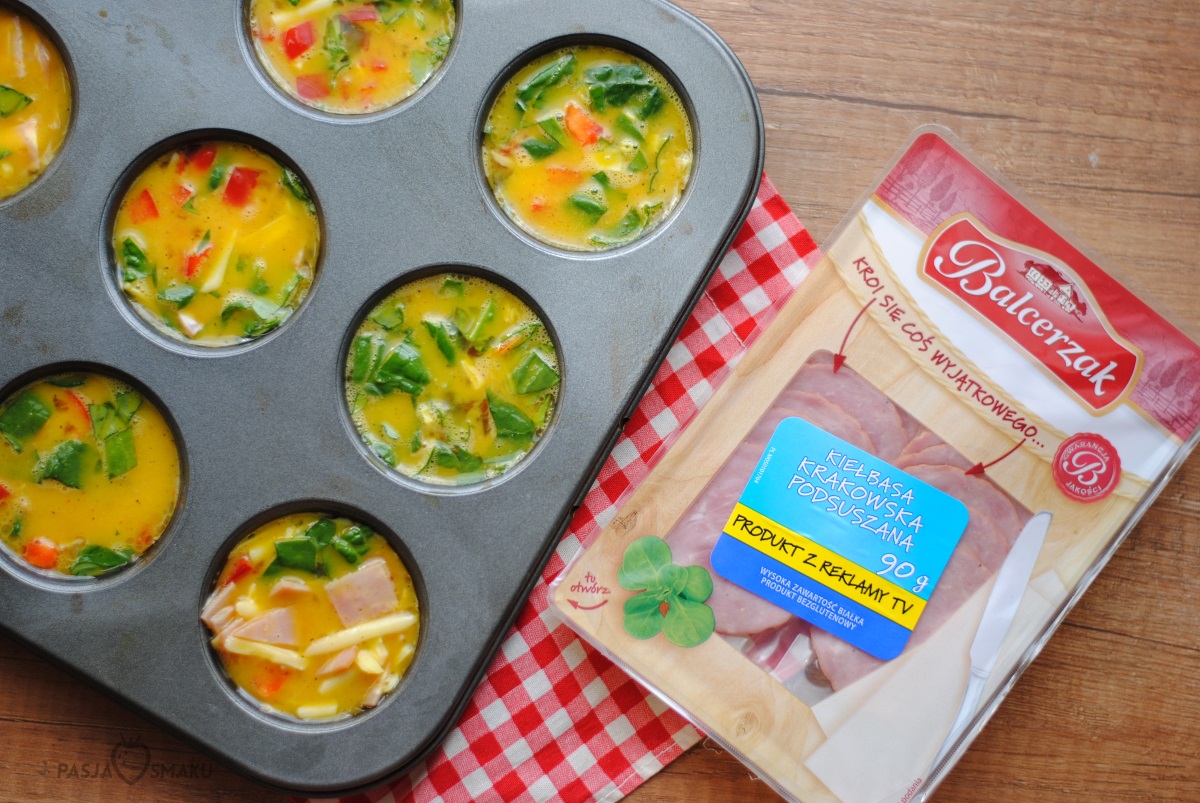 Muffiny śniadaniowe z kiełbasą, szpinakiem i papryką to świetny pomysł na smaczne rozpoczęcie dnia. Takie muffiny robi się bardzo szybko. Są świetne zarówno na ciepło, jak i na zimno. Można zapakować je np. do pracy.