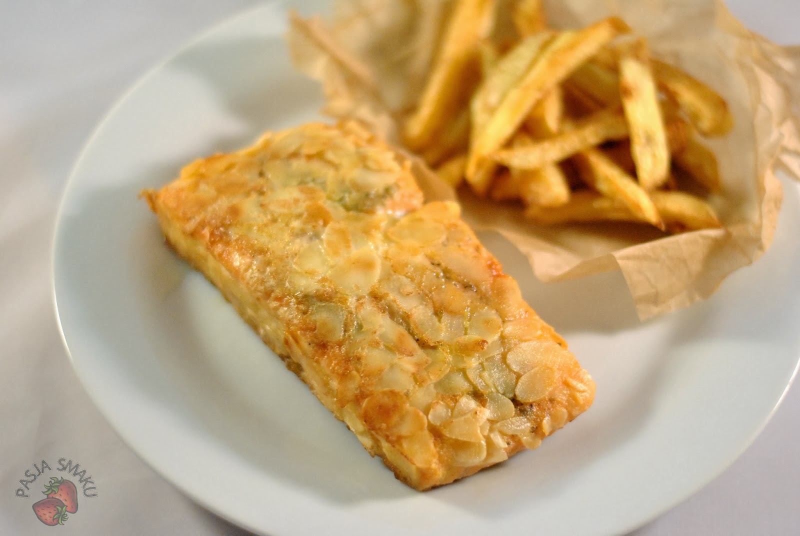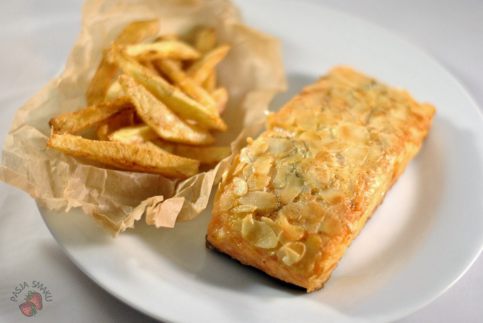 Jest niedziela. Pewnie jesteście już zmęczeni świątecznymi potrawami. Może więc coś innego? Proponuję Wam łososia smażonego w panierce z migdałów i domowe frytki. A do tego jakiś film.