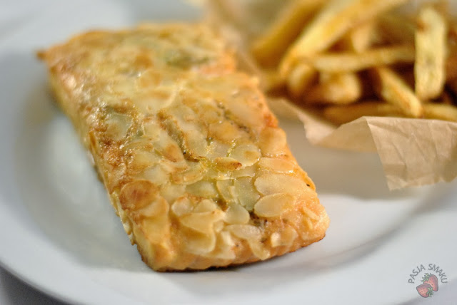 Bardzo lubię tak podaną rybę w otoczce z migdałów. Jadłam póki co w tym wydaniu dorsza, ale mój ulubiony łosoś też musi smakować genialnie 🙂