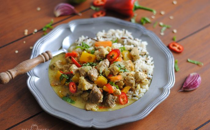 Jesienne chłody powoli zadomawiają się w Polsce, więc obiady muszą być bardziej rozgrzewające. Curry z wieprzowiną i papryką nadaję się idealnie na ten czas. Danie jest sycące, pikantne i egzotyczne. Składniki: 500 g łopatki wieprzowej 1 marchewka 1