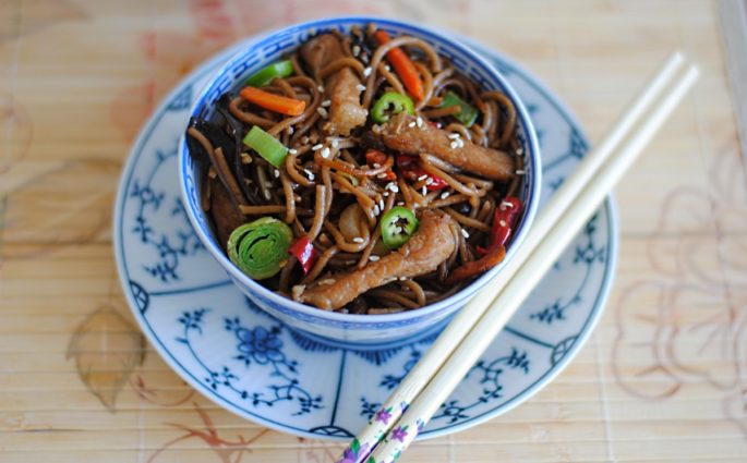 Makaron soba z wieprzowiną to jeden z tych przepisów, które powstają podczas opróżniania szafek i zamrażalki. Jak widać, można wyczarować coś fajnego bez wychodzenia z domu. Zachęcam do kreatywności i przeglądania tego, co macie w kuchni zanim wybierzecie się na