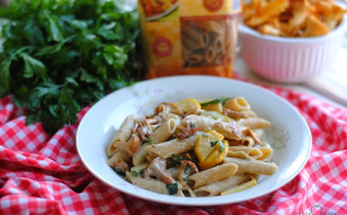 Makaron penne z kurkami i cukinią