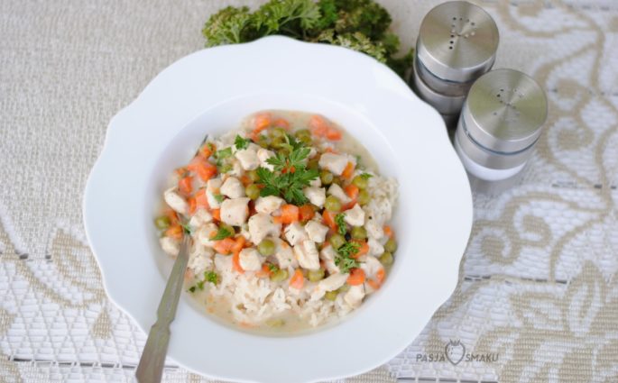 To danie jest idealne dla dzieci, osób zmuszonych ograniczać ilość przypraw i np. kobiet w ciąży. Delikatne mięso drobiowe, w leciutkim sosie z warzywami można podawać zarówno z ziemniakami, jak i ryżem czy kaszą. Każdy doprawia sobie wg uznania, ale pamiętajcie,