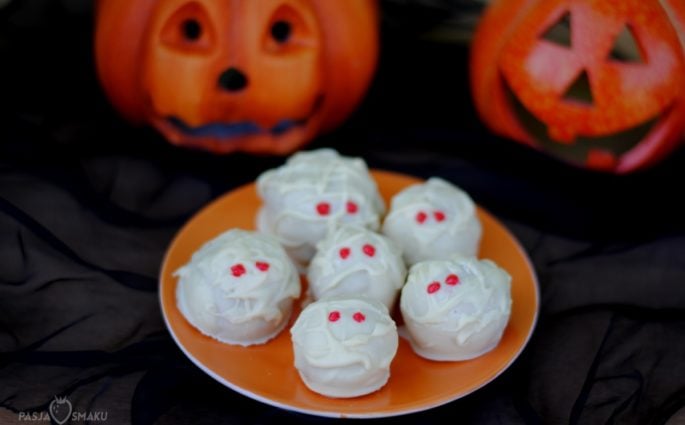 Dyniowe trufle mumie po raz pierwszy zobaczyłam na Pintereście. Okazało się, że pochodzą z bloga Creme de la Crumb. Byłam i wciąż jestem nimi zachwycona, a dyniowe trufle postanowiłam przygotować w domu. Samo wykonanie trufli jest bardzo proste, trochę więcej