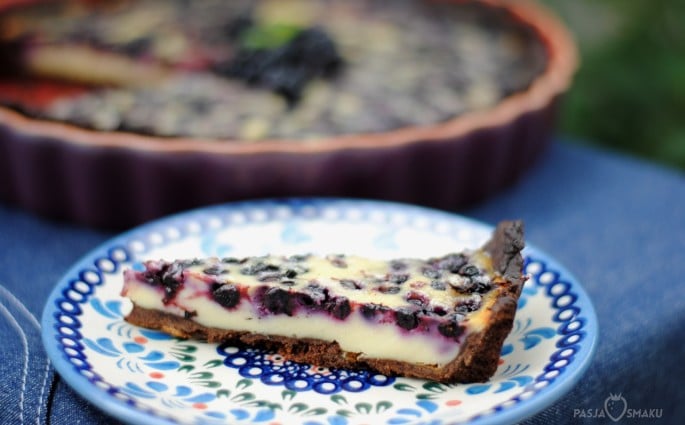 Tarta z masą marcepanową i jagodami