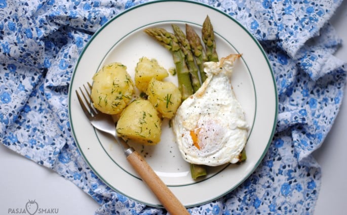 Szparagi z jajkiem sadzonym i młodymi ziemniakami