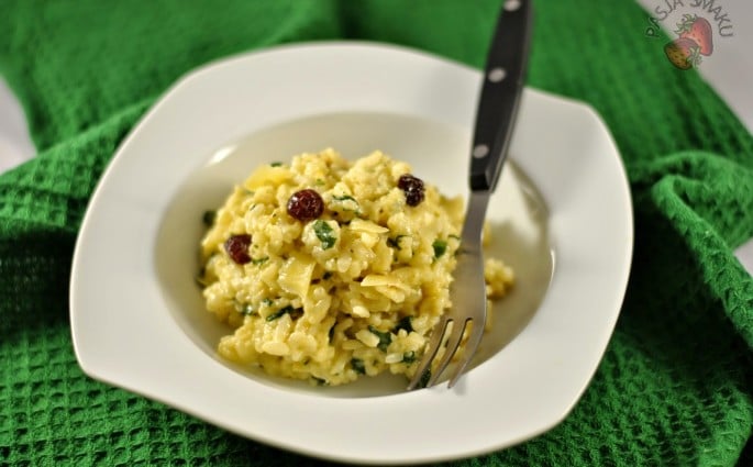 Risotto ze szpinakiem, suszonymi pomidorami i żurawiną
