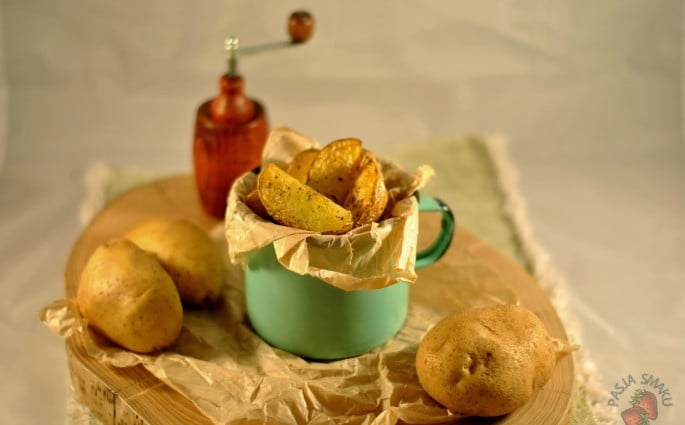 Pieczone ziemniaki pokrojone w ósemki, świetnie zastępują frytki. Są idealne jako dodatek do dań, ale można zajadać się też nimi bez niczego. Wykonanie ich to chwila, a pieczenie to tylko ok. 15 minut 🙂 Składniki /dla 2 osób/: 6 dużych