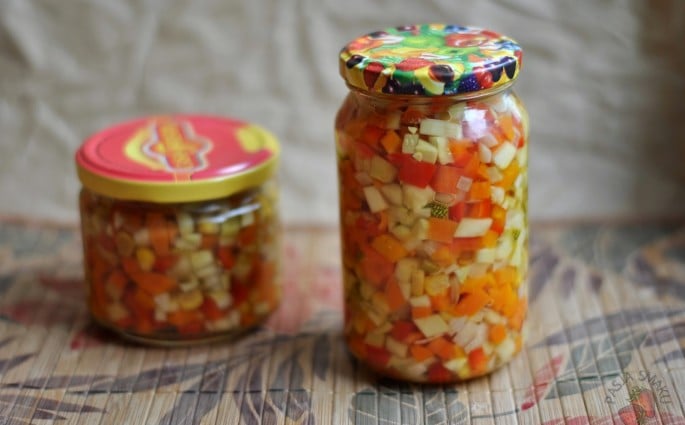 Przepis do domu przyniosła mama. Taka sałatka ze słoika jest świetna na niespodziewanych gości. Wystarczy ją odsączyć z zalewy w durszlaku i wymieszać z majonezem. Szybciej chyba się nie da. Koniecznie przygotujcie ją w przyszłym roku, gdy warzywa będą świeże
