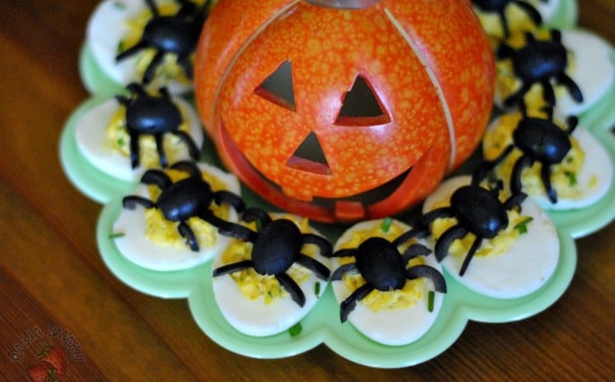 Niech nazwa Was nie zmyli – jajka nie będą faszerowane pająkami! To jedynie propozycja szybkiej do wykonania przystawki na spotkanie w stylu Halloween z ciekawą dekoracją. Nie potrzeba tu żadnych specjalnych umiejętności, więc nawet dzieci mogą pomóc przy ich przyrządzaniu.