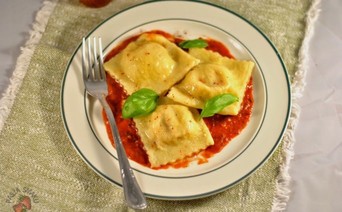 Dzisiaj mam dla Was swoje pierwsze ravioli. Wrażenia? Pyszne, z kremowym, pomidorowym wnętrzem i aromatycznym sosem. Mocno wyczuwa się także świeżą bazylię i oregano. Ale najlepsze jest w tym świeży makaron oraz serek Apetina z pomidorami i bazylią, który jest