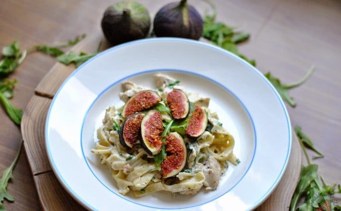 Jak nie jadłam fig, tak teraz jest ich sporo w mojej kuchni. Dziś prezentuję Wam kolejny przepis. Tym razem z makaronem, kurczakiem i kremowym sosem na bazie serka. Składniki: 1/2 opakowania makaronu wstążki 2 figi 1/2 białej cebuli 1