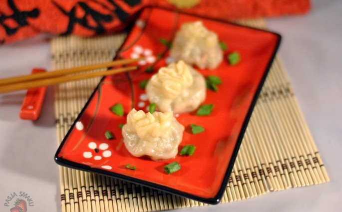 Uwielbiam chińskie pierożki. Są delikatne, mają aromatyczny farsz i doskonale łączą się z sosem sojowym. Polecam je jako przystawkę lub jako dodatek do bulionu czy rosołu. Źródło: „Magazyn kulinarny Poradnika Domowego”, nr 2/2014, s. 14. Składniki: Ciasto: 30 dag mąki