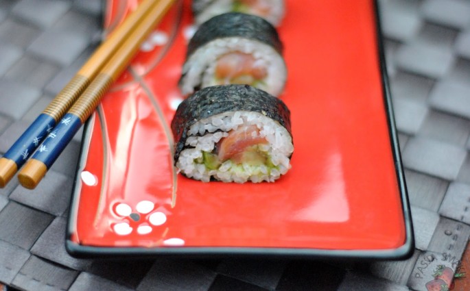 Swoje pierwsze sushi mam już za sobą. Zrobione własnoręcznie, bez zbytniego nakładu sił. Wystarczy kilka składników, a poza etapem przygotowywania ryżu, sushi robi się naprawdę szybko. By prawidłowo zrolować sushi sięgnęłam do książki „Sushi i sashimi” (wydawnictwo RM) o której