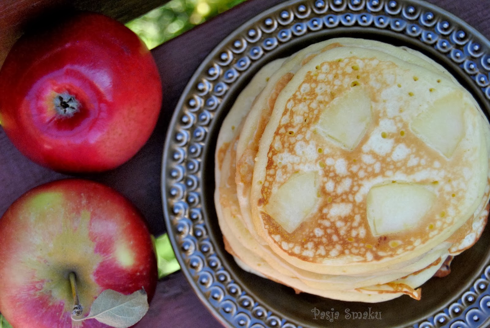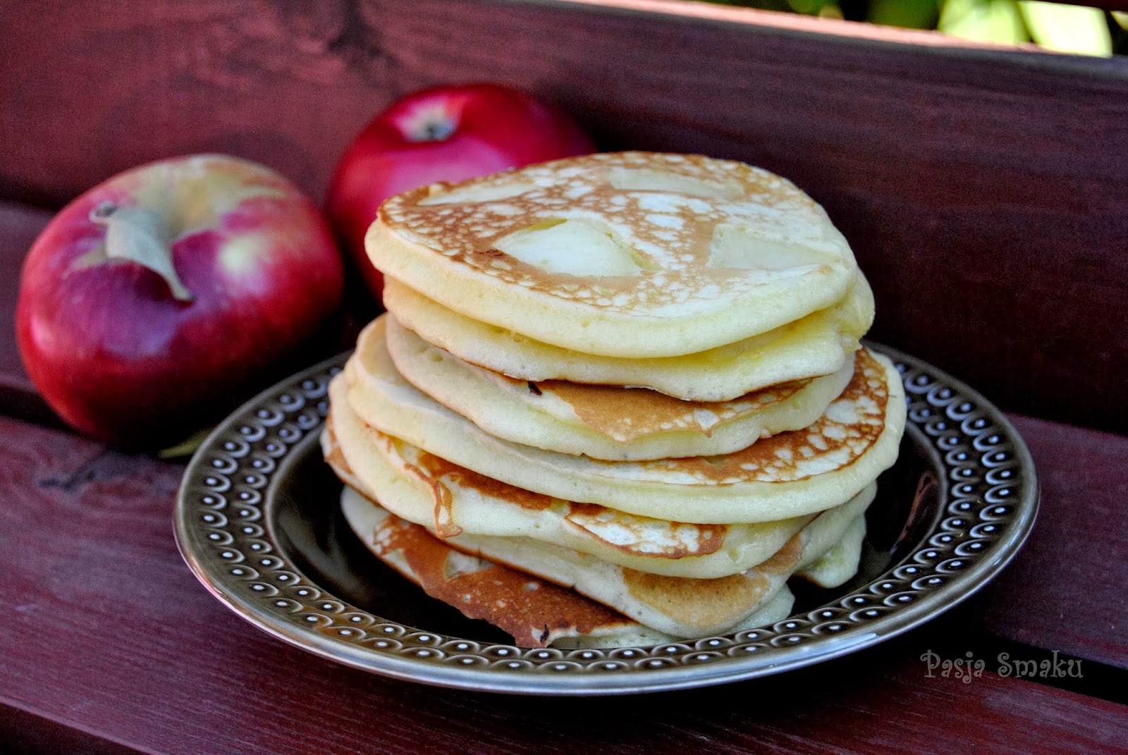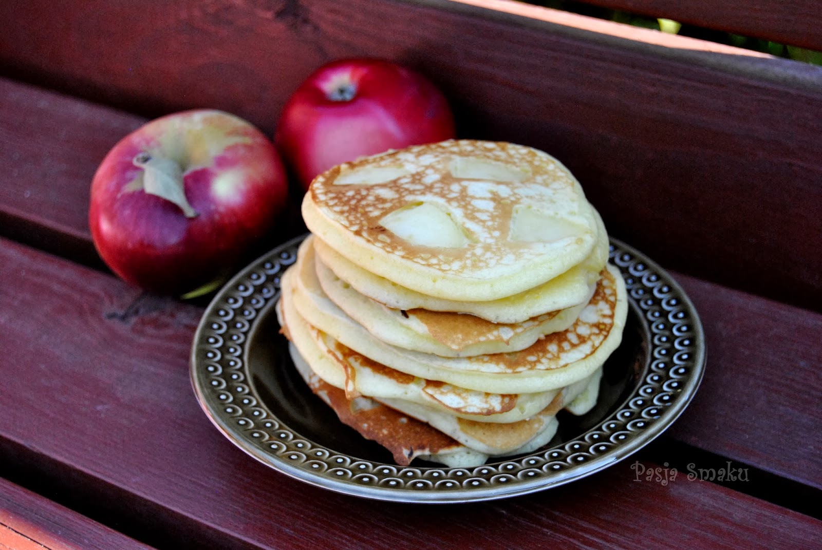 Uwielbiam pancakes, ale niestety w ostatnich miesiącach nie mam czasu na takie leniwe pieczenie. Jednak właśnie dziś znalazłam czas i postanowiłam umilić sobie popołudnie czymś pysznym do herbaty i książki. Jako, że mój tata bardzo lubi takie placuszki z jabłkami, to dziś właśnie w takiej postaci pojawiły się na naszym stole.