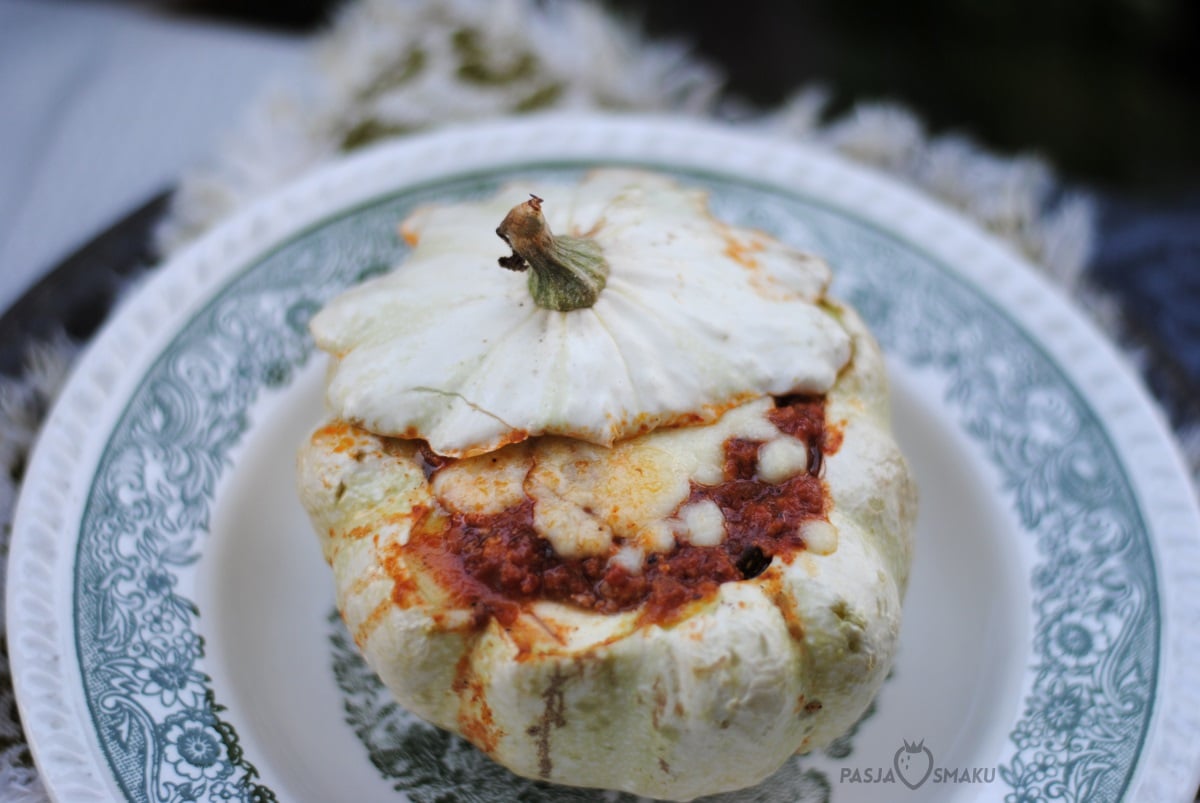 Przechadzając się po targu zauważyłam patisony w rewelacyjnej cenie – 50 g za sztukę! Nie wiem czy wcześniej je jadłam, pewnie nie, ale tym razem oczami wyobraźni widziałam już parujące danie: patison faszerowany mięsem mielonym – w sam raz na jesienną pluchę za oknem. Jak pomyślałam, tak zrobiłam. Myślę, że Wy równie chętnie go przygotujecie.