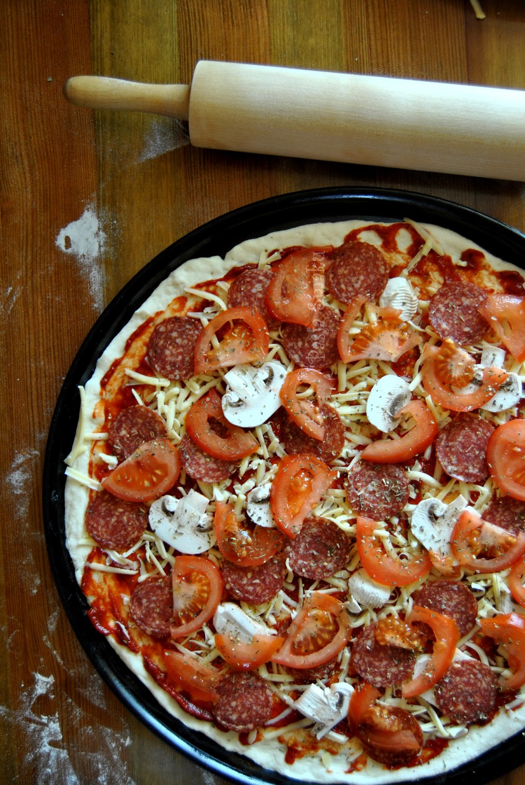 Kiedyś nie lubiłam salami, teraz mi nie przeszkadza. A w pizzy jest nawet całkiem dobre. Dziś podrzucam Wam przepis właśnie na pizzę taki trochę fast food’owy obiad.