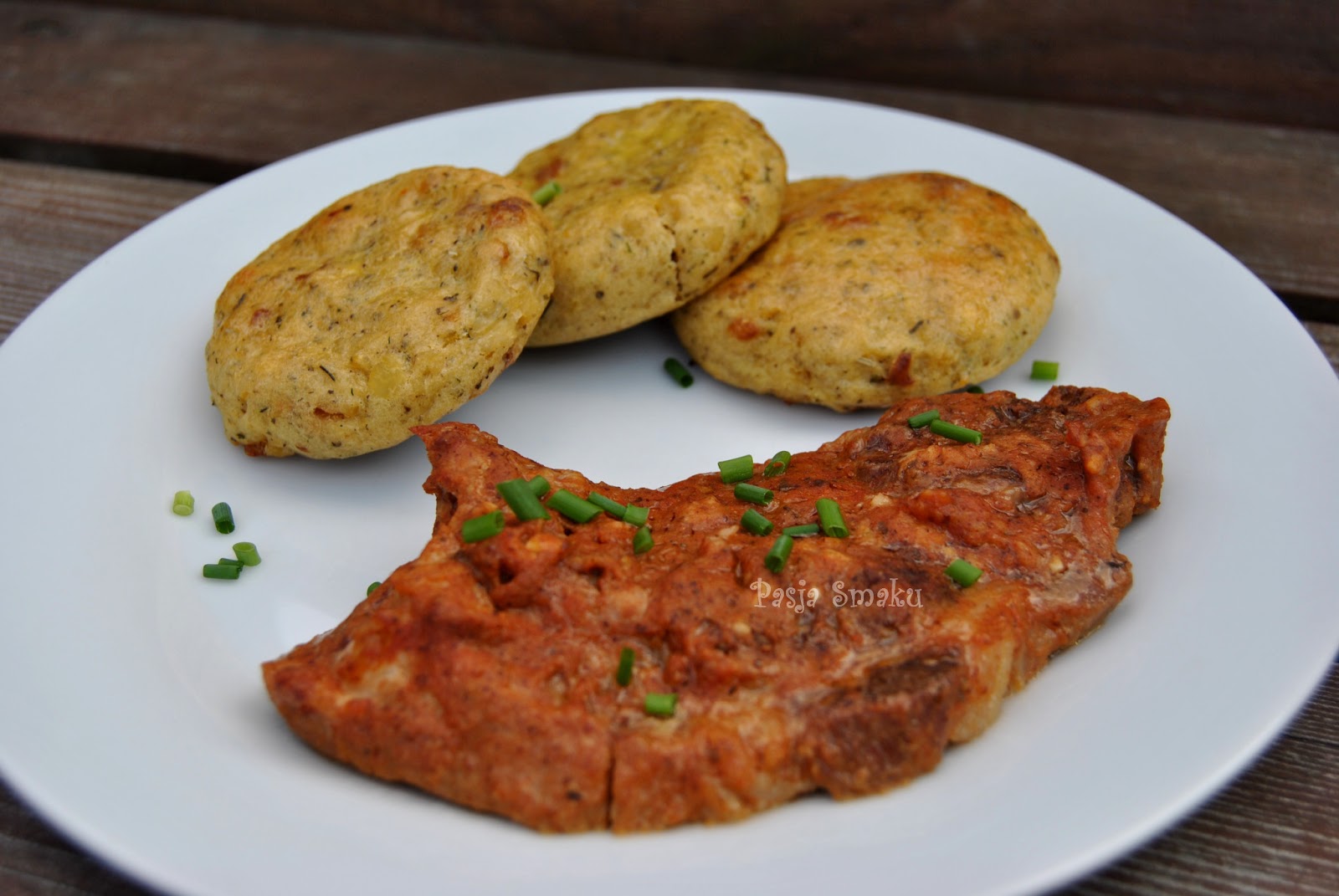 Czasami zostają u mnie ziemniaki z obiadu, pewnie podobnie jest też u Was. Nie każdy wie co z nimi zrobić, każdy chciałby świeże. Kiedyś robiłam podobne kotleciki z pieczarkami, a tym razem inspirowałam się przepisem na pieczone mini placuszki na blogu Ali z Krainy Czarów. Wyszły bardzo ładne, może trochę zbyt spieczone, ale mi smakowały. Podała je jako dodatek do pieczonej karkówki.