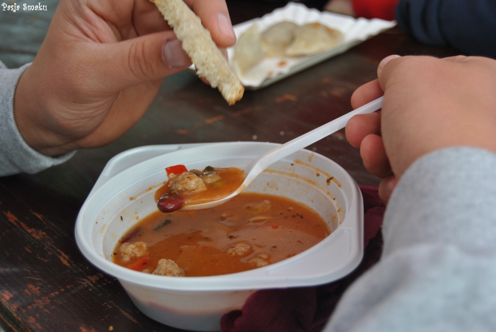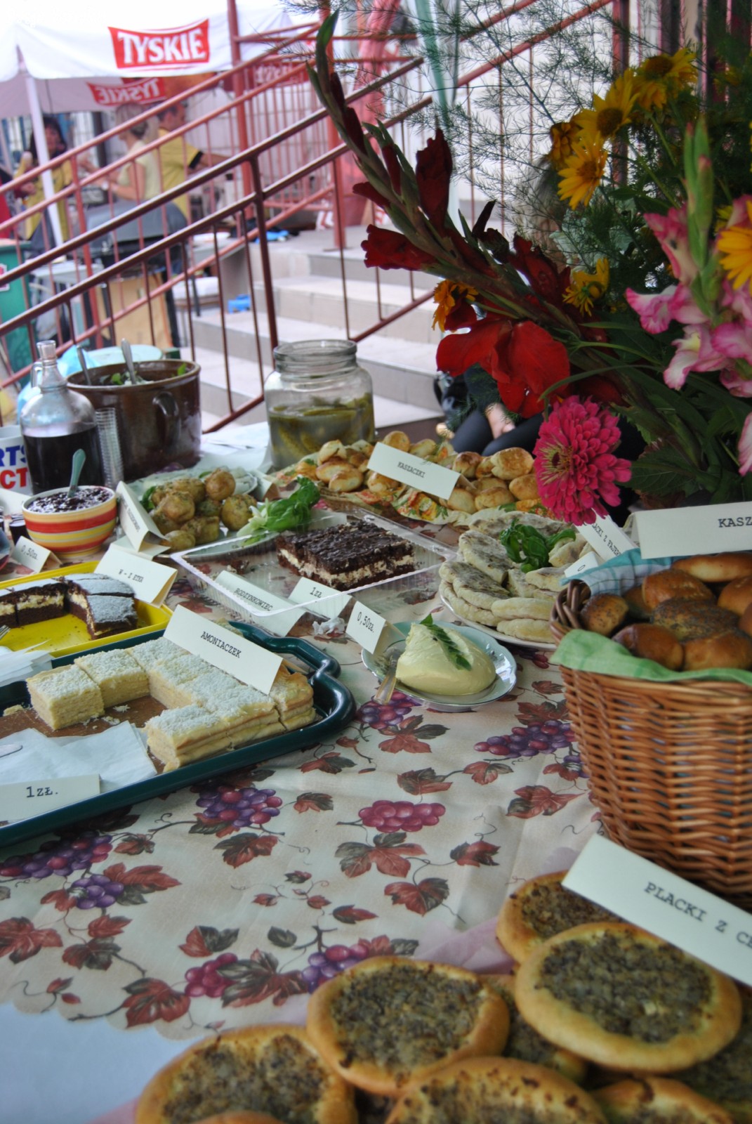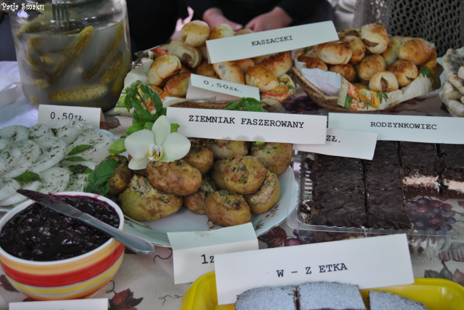Stoiska były zaledwie 3, ale dość ciekawe. Oczywiście dla osób, które odwiedzają większe imprezy tego typu, nie będzie to nic nowego, ale dla mnie, jak na początek wystarczyło. Wszystkie stoiska cieszyły się dużym zainteresowanie, a potrawy, choć co jakiś czas dokładane, szybko znikały z tacek. Wszystko można było kupić za 0.50 -1 zł. Panie przygotowały szeroki repertuar produktów.