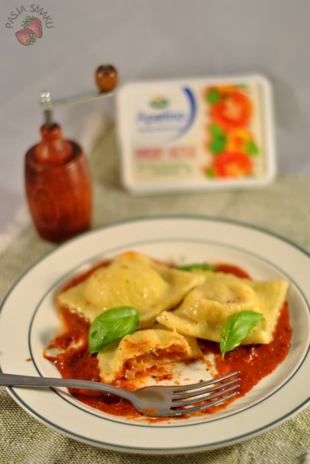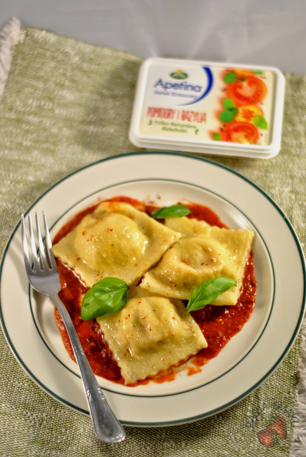 Dzisiaj mam dla Was swoje pierwsze ravioli. Wrażenia? Pyszne, z kremowym, pomidorowym wnętrzem i aromatycznym sosem. Mocno wyczuwa się także świeżą bazylię i oregano. Ale najlepsze jest w tym świeży makaron oraz serek Apetina z pomidorami i bazylią, który jest kropką nad i tego dania.