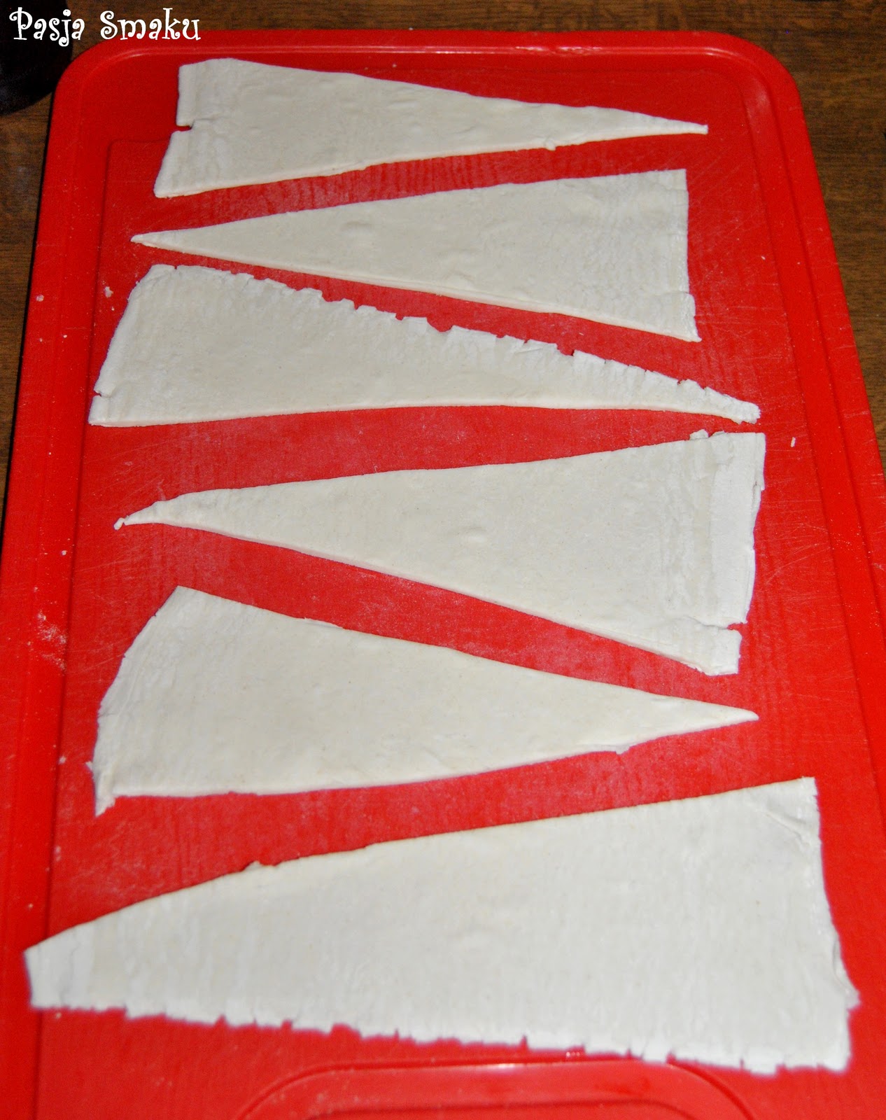 1. Ciasto lekko rozmrozić i rozwałkować.