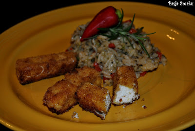 cm. Rozmącić jajko i zanurzać w nim kawałki sera, a następnie obtaczać w bułce