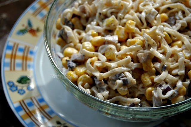 Taka prosta, a pewnie bardzo smaczna! 🙂 Uwielbiam takie zwykłe sałatki z makaronu z zupek kuksu 🙂