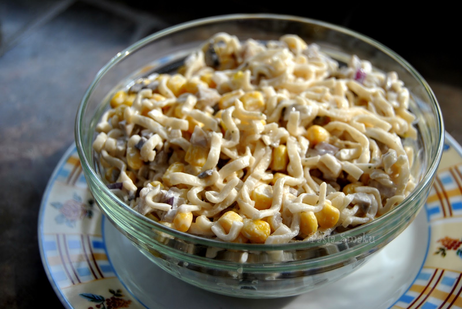 Taka prosta, a pewnie bardzo smaczna! 🙂 Uwielbiam takie zwykłe sałatki z makaronu z zupek kuksu 🙂