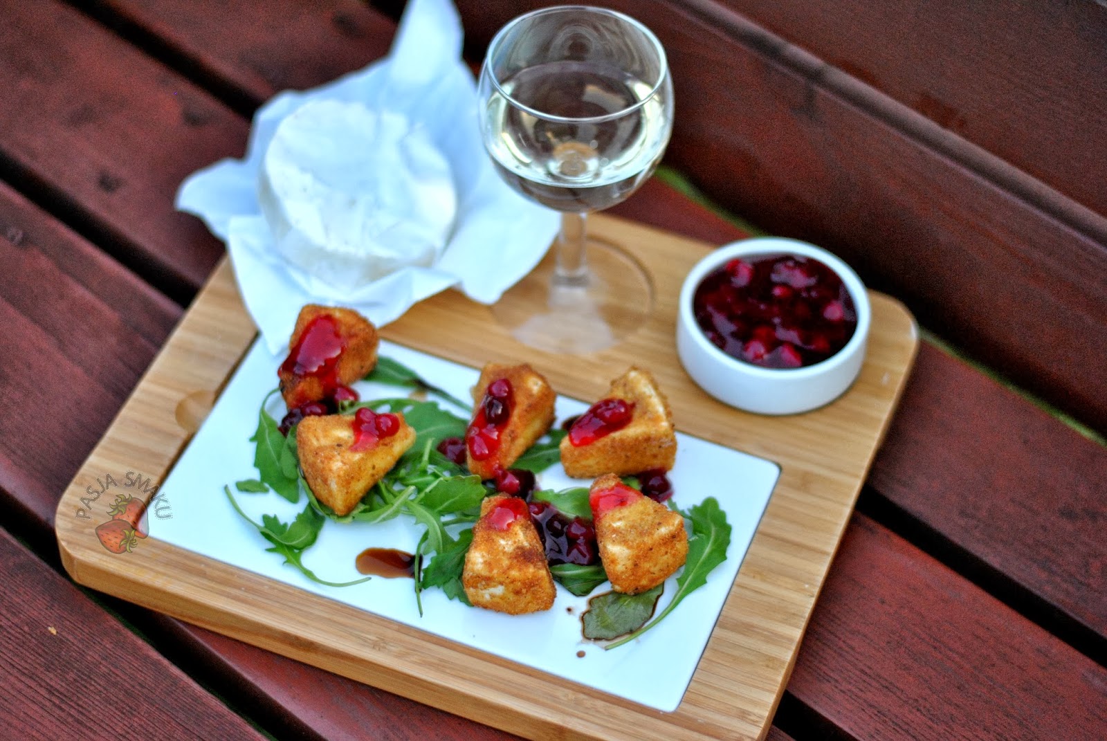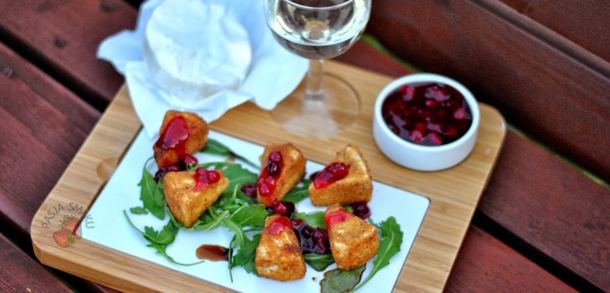 balsamicznego. Na niej ułożyć usmażony camembert i kilka łyżeczek
