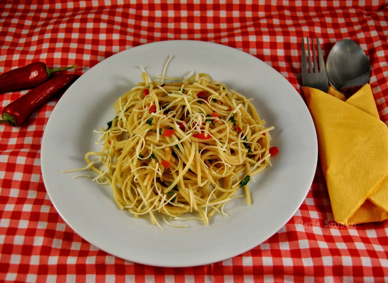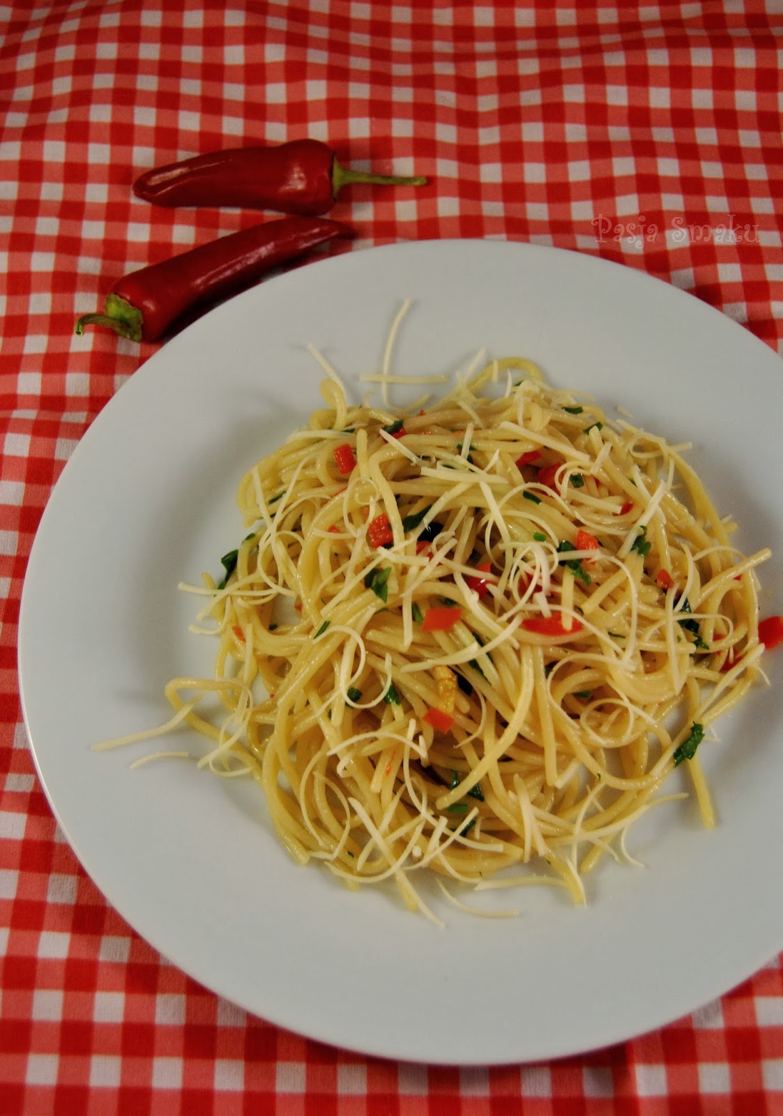 Wspaniale spaghetti aglio, olio e peperoncino,zawsze jadlam w wersji oryginalnej. Nigdy nie probowalam z serem, sprobuje!