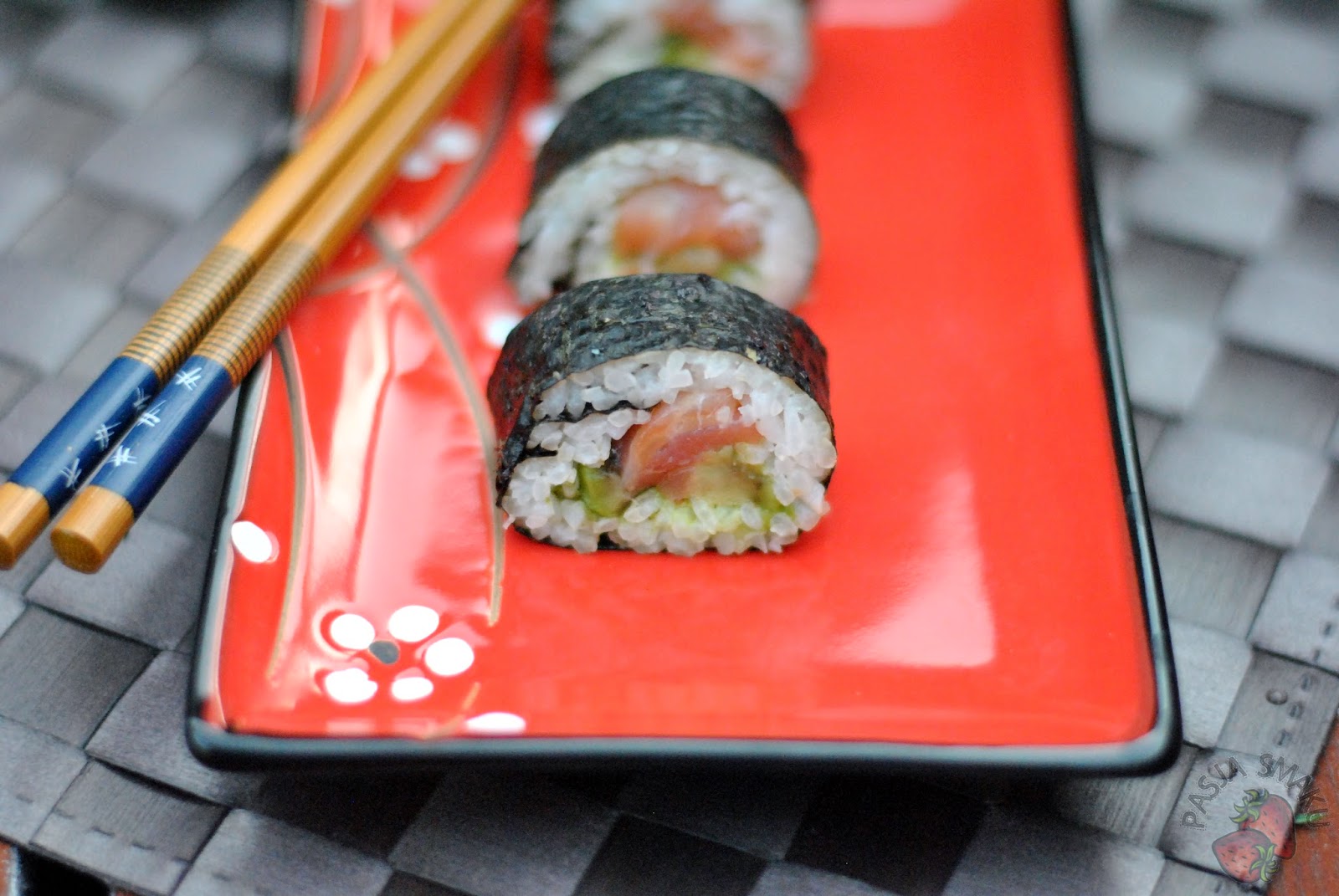 Swoje pierwsze sushi mam już za sobą. Zrobione własnoręcznie, bez zbytniego nakładu sił. Wystarczy kilka składników, a poza etapem przygotowywania ryżu, sushi robi się naprawdę szybko. By prawidłowo zrolować sushi sięgnęłam do książki „Sushi i sashimi” (wydawnictwo RM) o której niedługo napiszę Wam więcej.