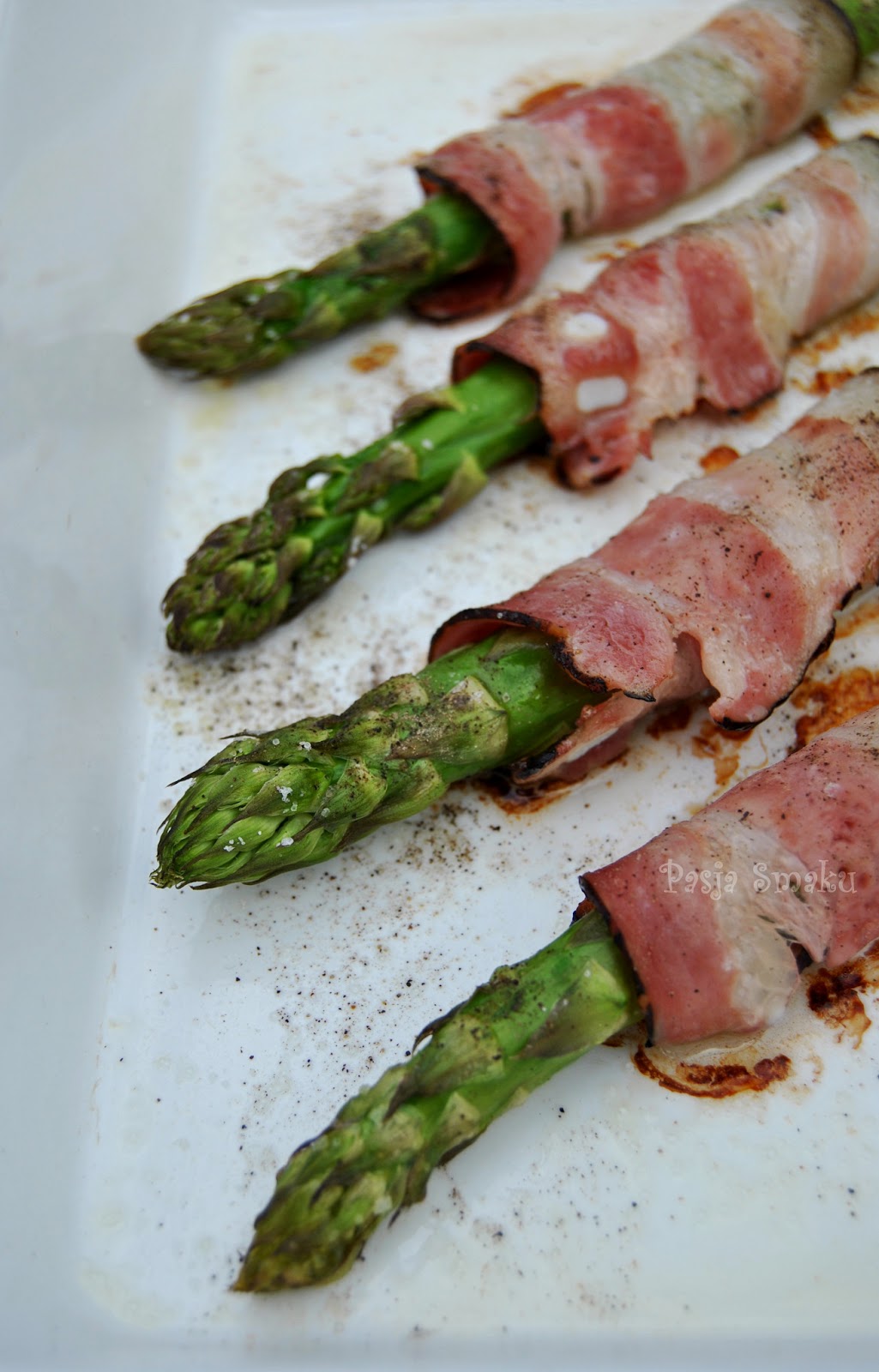 Prosta i szybka przekąska na ciepło. Świetne połączenie, które zadowoli nawet osoby niezbyt przekonane do szparagów. Oczywiście to tylko przykładowa ilość, spokojnie można przygotować wielokrotność ilości proponowanej w przepisie.