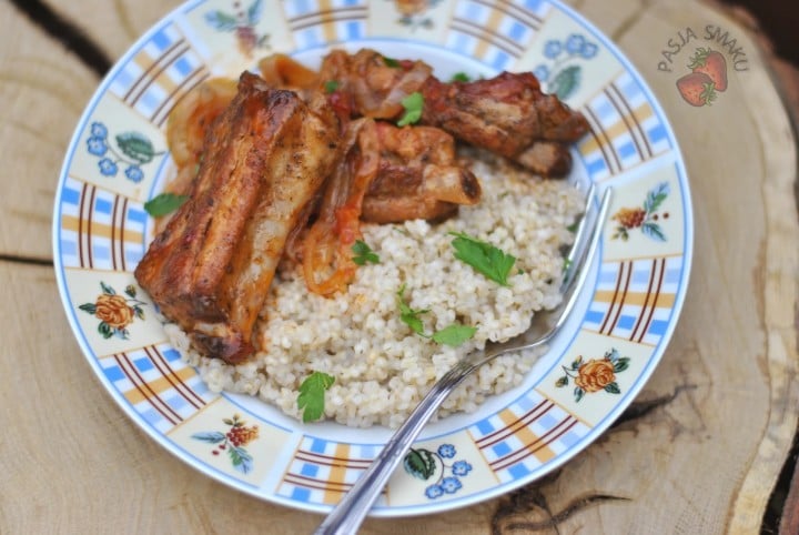 Żeberka z jabłkami przygotowaliśmy na jedną z rodzinnych imprez. Dodatek jabłek i cydru bardzo fajnie podkreśla smak mięsa. Przepis znalazłam w Przyślij Przepis (nr. 10/2015). PS. Zdjęcia niestety nie są zbyt urodziwe, ale goście czekali 🙂 Składniki: