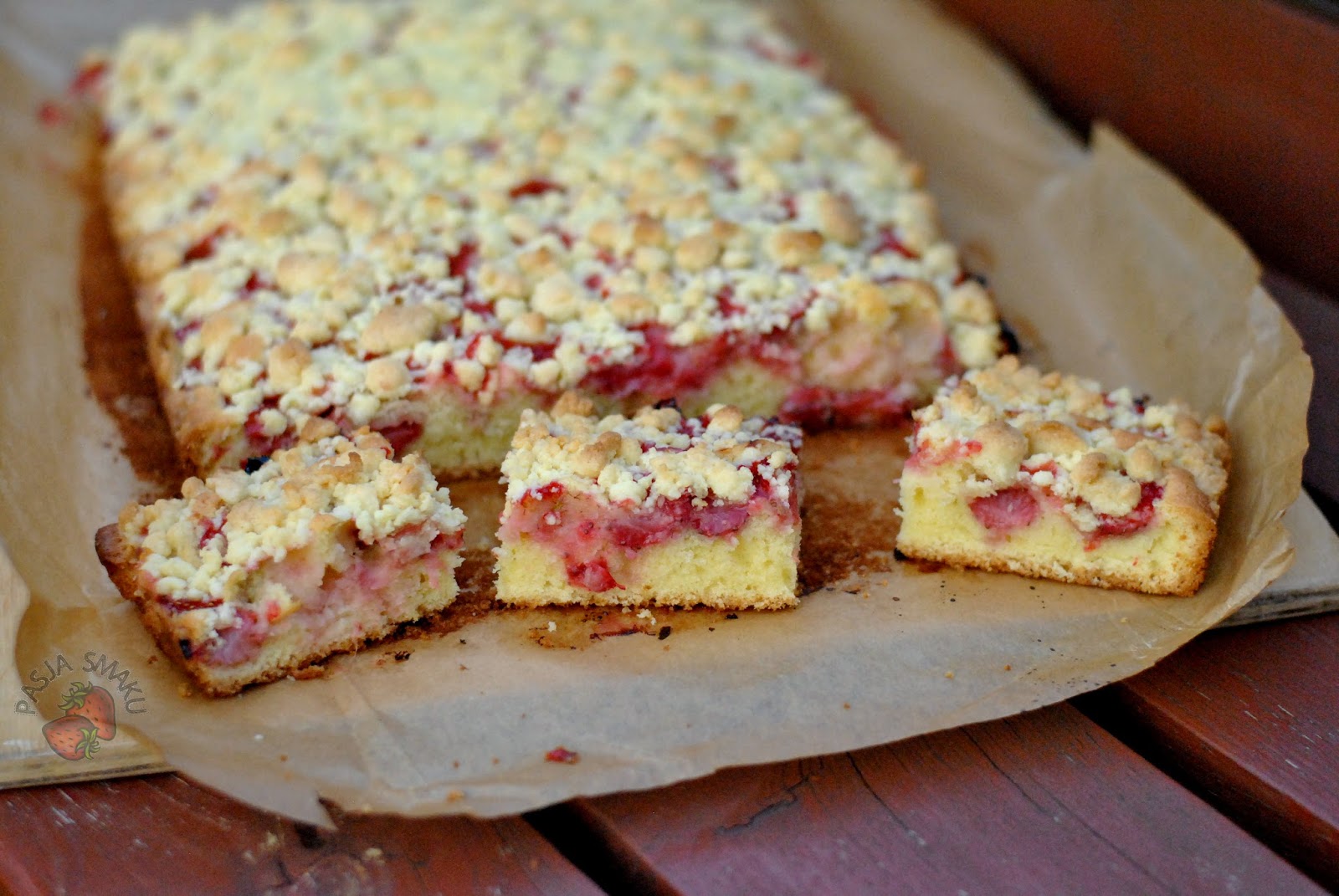 Marzyło mi się takie ciasto od dawna. Domowe, maślane, pachnące tak, że czuć jego zapach w całym domu. W sam raz do herbaty czy kawy. Na niedzielę i na co dzień. Mocno sezonowe, ale do zrobienia nie tylko z truskawkami. Inne owoce też będą pasować.