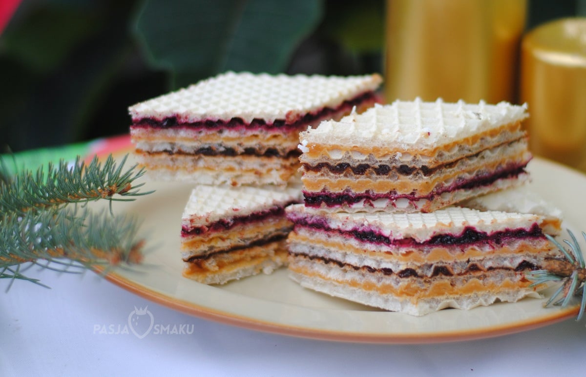 Przekładane wafle to klasyczny słodki przysmak z mojego dzieciństwa. Przygotowywane przez mamę na różne sposoby – pamiętam do dziś. Czasem sobie o nich przypominamy, tak jak w te Święta. Tym razem zrobiliśmy wafle z masą kajmakową i powidłami śliwkowymi oraz dżemem porzeczkowym. Te smaki znakomicie się uzupełniają!