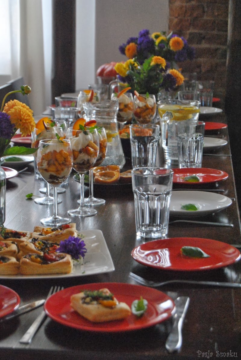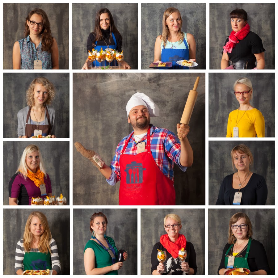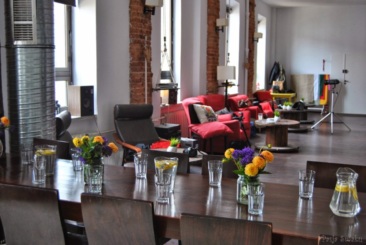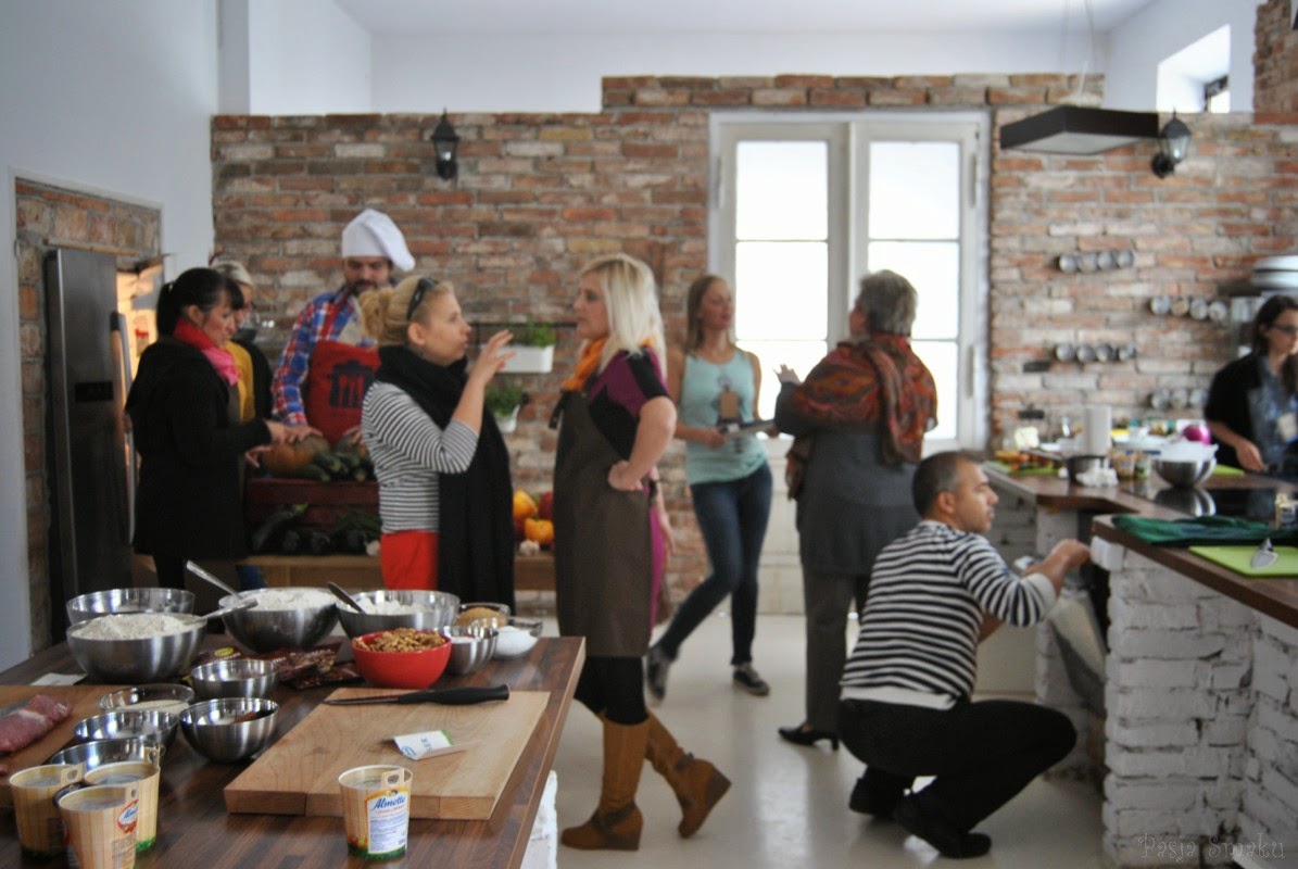Na zdjęciu powyżej macie obraz tego cudownego i miłego rozgardiaszu, który panował właściwie przez cały czas trwania warsztatów.Każdy pomagał, rozmawiał, uśmiechał się… Nie było sztywnych podziałów na prowadzących i uczestników. Mimo, że z całej grupy znałam tylko Marlenę, to już po krótkim czasie wyparowała ze mnie cała „panika”. Stres nieobycia warsztatowego udzielił mi się tylko na początku, gdy losowaliśmy kategorie dań, które mieliśmy przygotować. W głowie miałam pustkę, ale dzięki Ani szybko zostałam sprowadzona na właściwe tory. Dzięki!