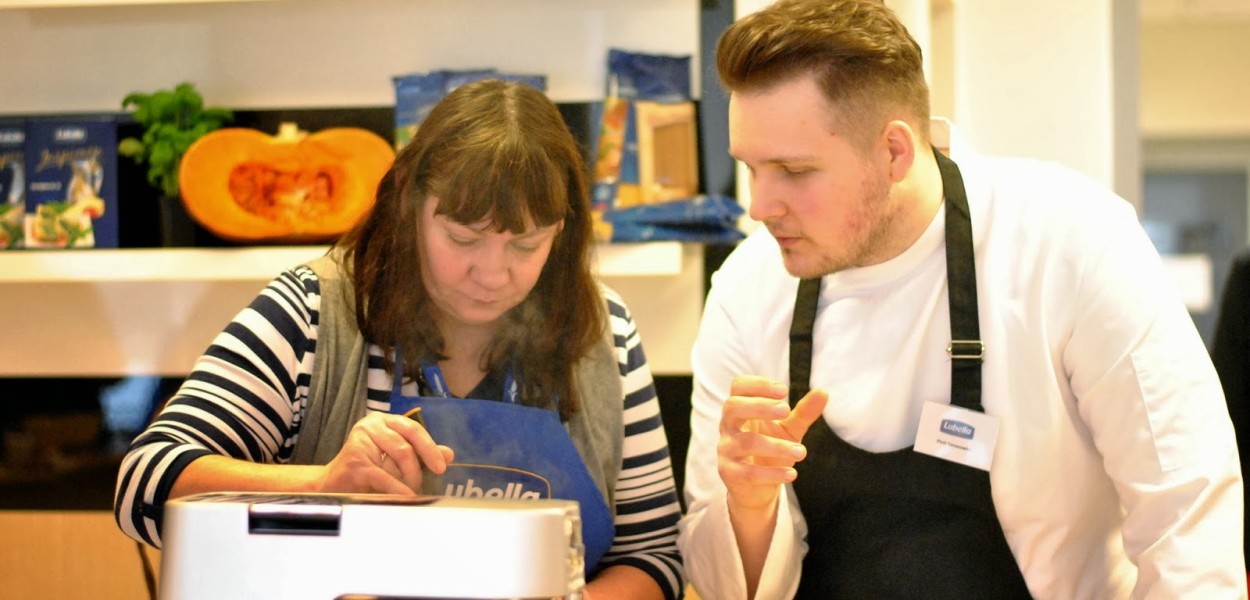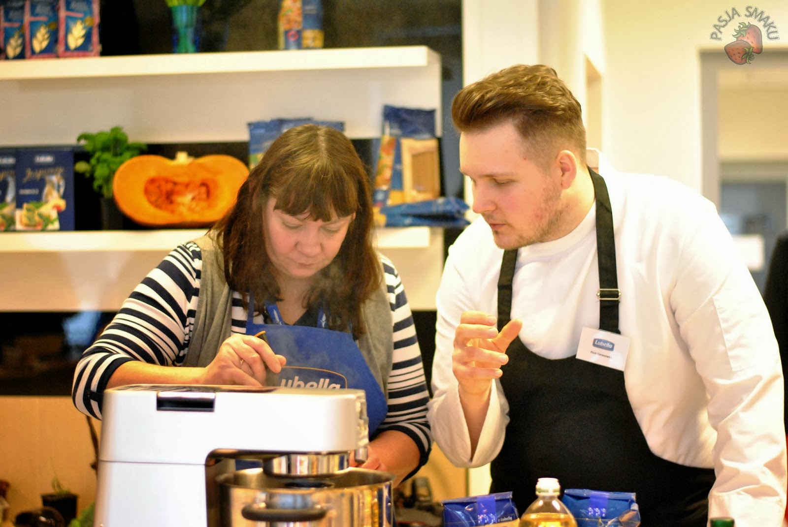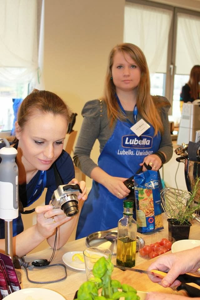 W międzyczasie na innych stanowiskach także powstawały ciekawe i kolorowe potrawy. Oczywiście żadna z nas nie odmówiła sobie rozmów z innymi blogerkami, podglądałyśmy się wzajemnie przy pracy, także przez wizjery aparatów, i rozmawiałyśmy z ekspertami, którymi byli: Piotr Ceranowicz – ekspert kulinarny Lubelli i Anna Różyk – dietetyk.